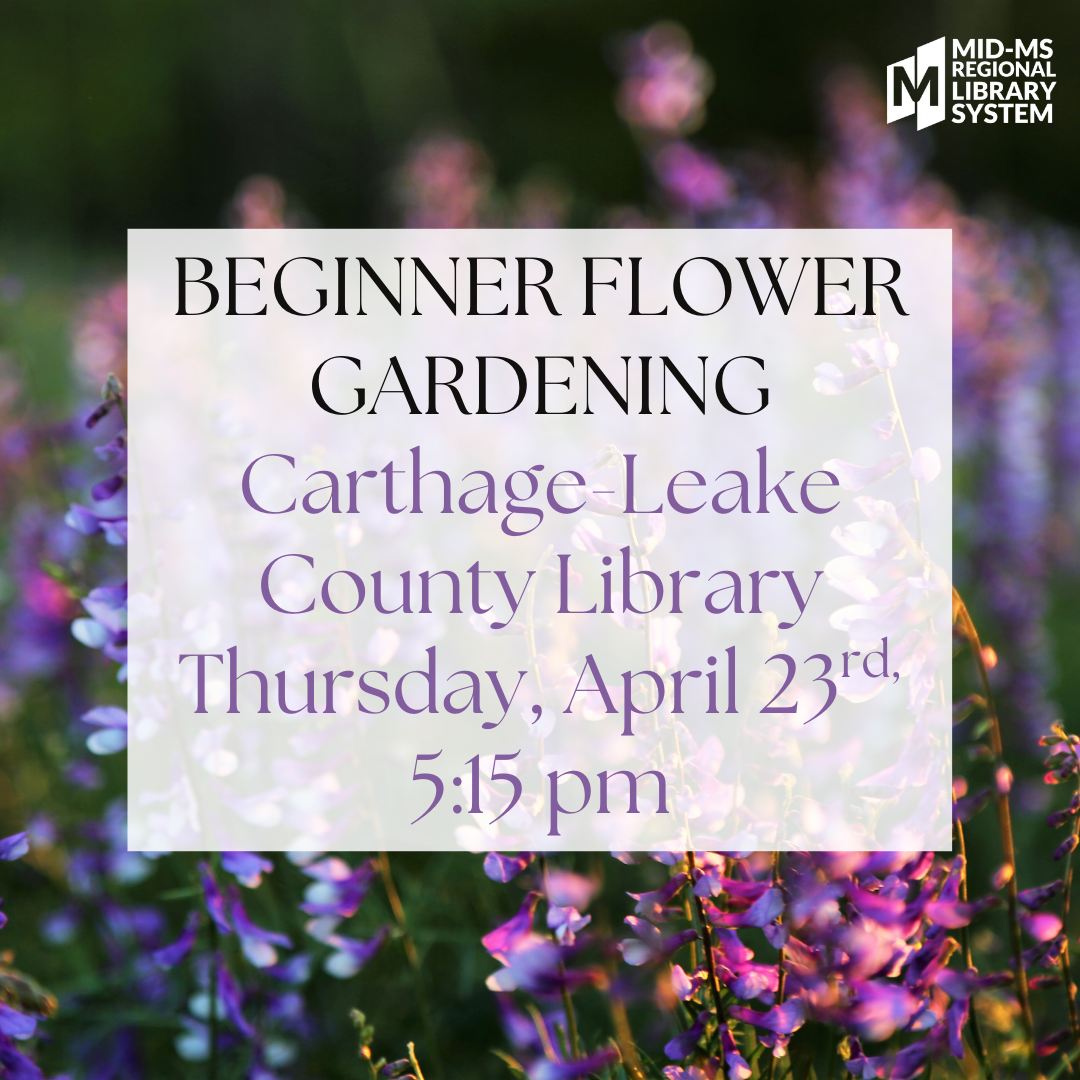 Join Vicki Ganann from the Leake County Extension Office for Beginner Flower Gardening, a practical class designed to help you cultivate beautiful, thriving flowers. Learn expert tips on selecting, planting, and caring for your blooms to create a vibrant and flourishing garden.