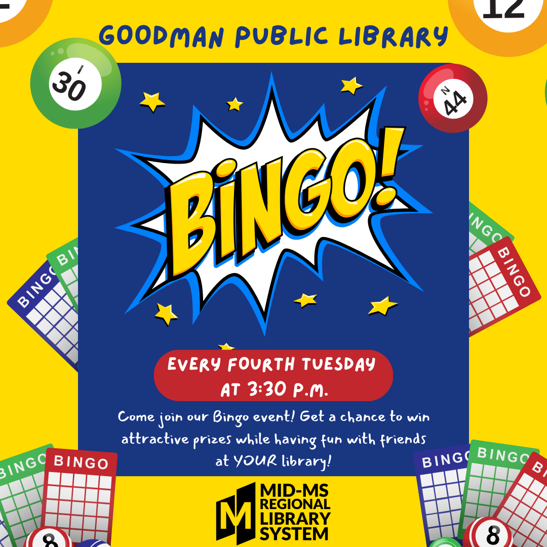 Come join our Bingo event, every FOURTH Tuesday at 3:30 p.m.