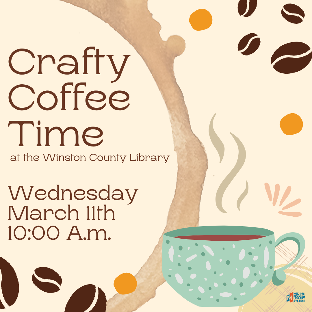 Join us at the library for a relaxed morning of coffee, treats, and simple projects. No experience needed, just come enjoy good company and a crafty start to your day.