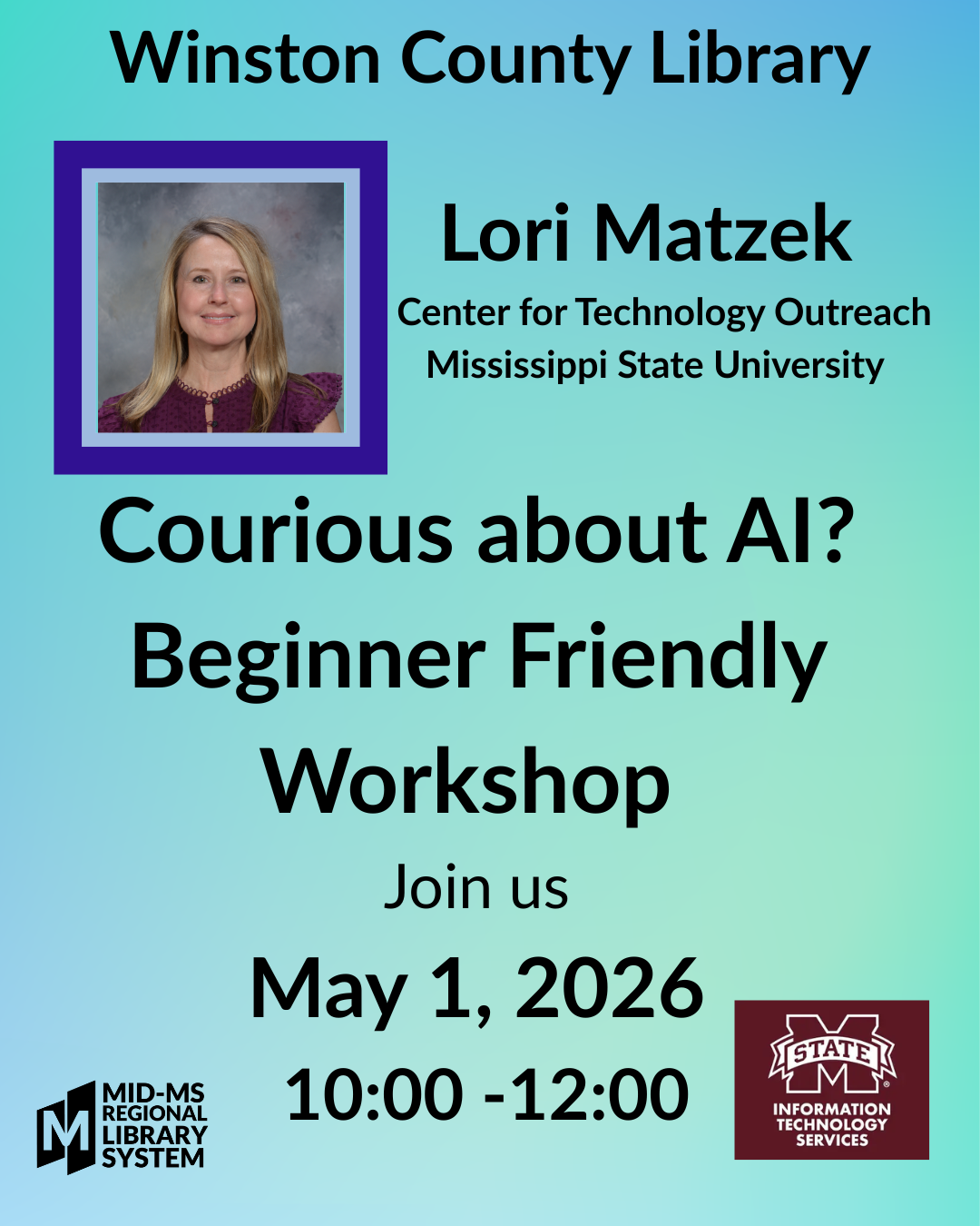 Curious about Artificial Intelligence but not sure where to start? Join us for a two-hour, beginner-friendly workshop designed for those new to AI. Participants will learn what AI is, how it is used in everyday life, and explore its growing role in today’s world. The session includes simple explanations of key concepts, real-life examples, and interactive, hands-on activities that allow participants to see AI in action. Attendees will also learn how to recognize AI-generated content and have the opportunity to ask questions during an open discussion and Q&A. No prior experience is needed—just bring your curiosity!