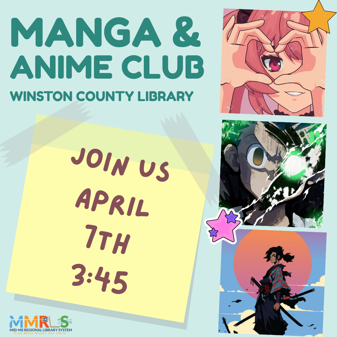 Are you obsessed with anime? Love reading manga? Join our brand new Manga & Anime Club at the library, created just for kids and teens who can’t get enough of their favorite characters, stories, and art styles! Each month, we will dive into different series, explore Japanese culture, and chat about all things anime and manga.