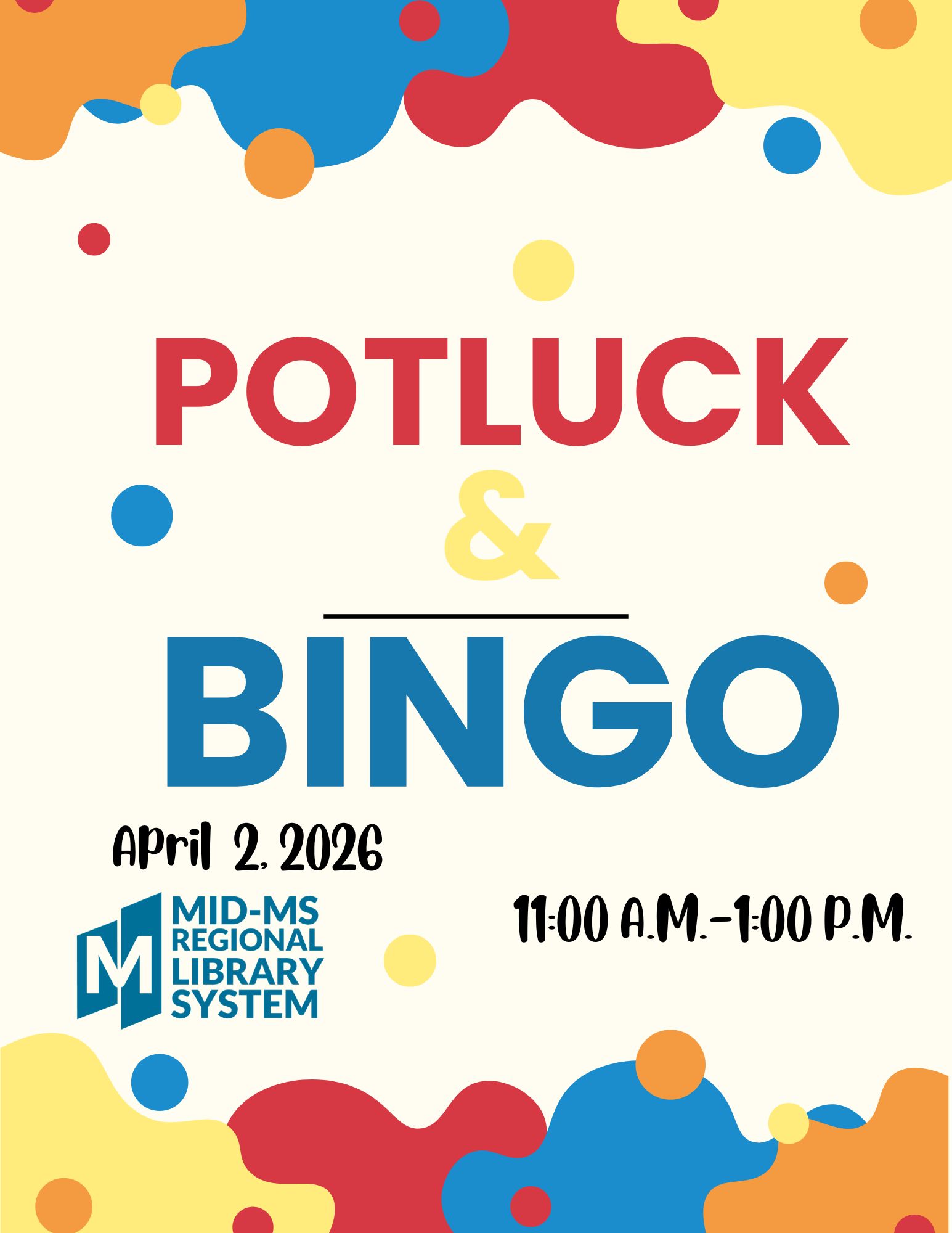 So, we all know that means Potluck & BINGO on Wednesday! If you’ve been around Walnut Grove for very long you know, it’s been the National Library Week Wednesday program since the 1990s. It wouldn’t be right to change it now. Bring your favorite dish and join us for fun, delicious food, and BINGO!